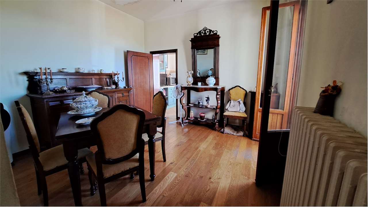 Ingresso al primo piano da scala esterna, soggiorno, sala da pranzo, cucina semi-abitabile con terrazzo vivibile. Una camera matrimoniale ed un bagno con vasca ristrutturato. Al piano terra bilocale attualmente adibito a miniappartamento e composto da ingresso, soggiorno, cucina abitabile, disimpegno e un bagno ristrutturato con doccia. Garage di mq. 18 e annesso di circa mq. 77 oltre a giardino e ampio resede pavimentato. Proprietà completamente recintata.